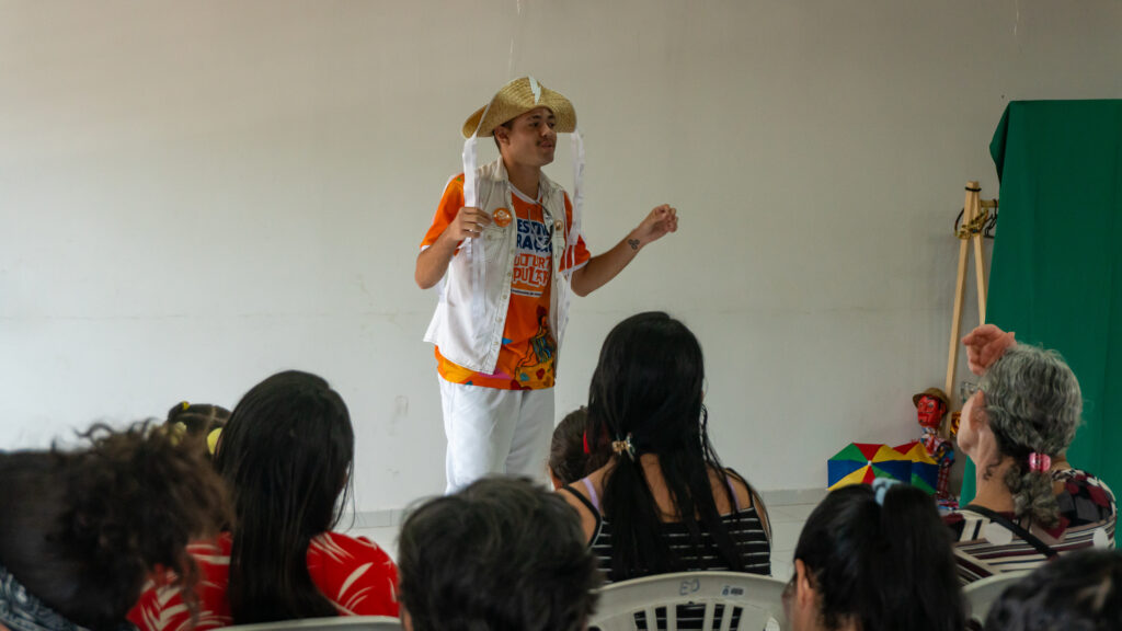 Além da estreia, a programação aberta ao público, contou com a apresentação do mestre Badeco Violeiro contando a sua história na Cadeira de Balanço, respondendo perguntas sobre a sua trajetória na cultura popular. Depois, os arte-educadores da organização em Pombos/PE apresentaram a contação de história “O Pantel da Mata”, que narra os principais contos populares de forma lúdica e divertida.