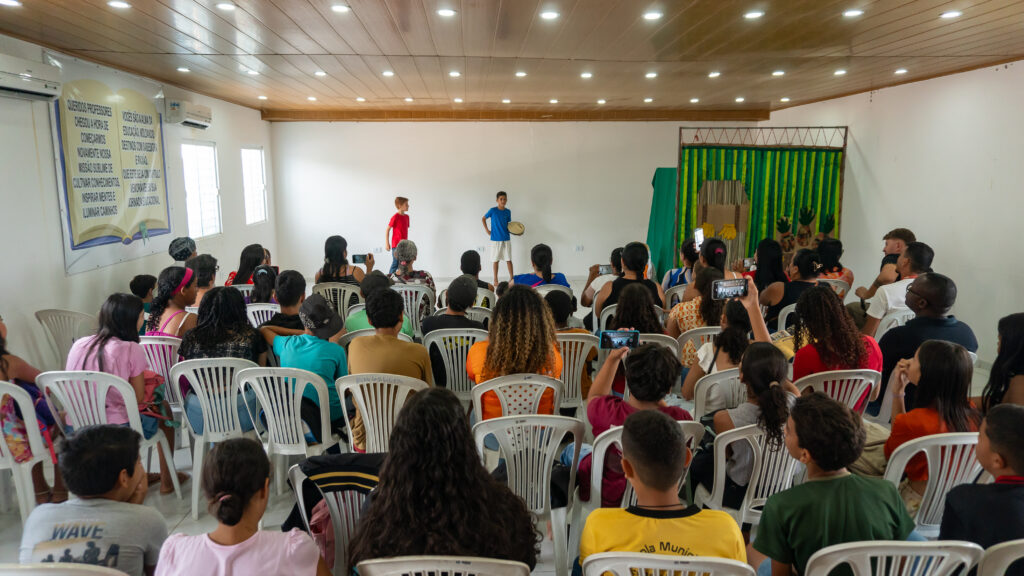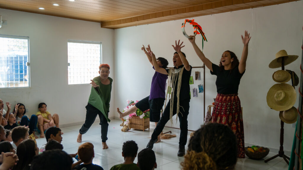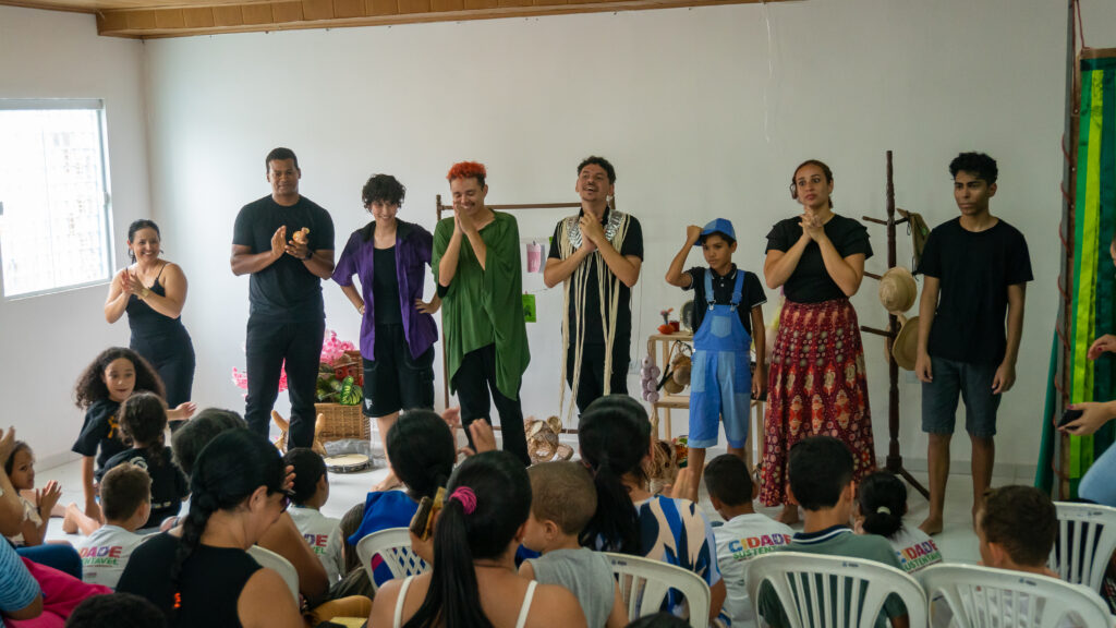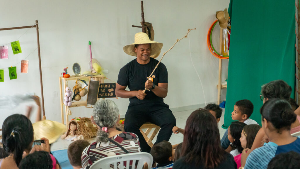 O grupo de teatro Trupe Trovoada, do Ponto de Cultura Sanfona Cultural, em Pombos/PE, esteou o espetáculo “Na cultura do brincar”, dirigido por Wesley Wolf, arte-educador da Geração Futuro, no Auditório da Secretaria Municipal de Educação, na abertura do 4⁰ Festival Geração da Cultura Popular, nesta quinta-feira, 5 de dezembro, uma edição especial em celebração aos 20 anos da organização.