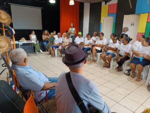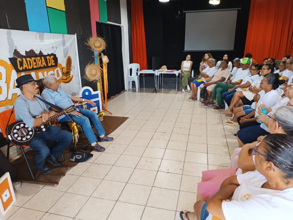 A Geração Futuro, através do Projeto Verdeporto realizou mais uma edição do Cadeira de Balanço nesta terça-feira, 12 de agosto, no Cineteatro Geração Futuro, em Lagoa do Itaenga-PE. O evento contou com a presença especial dos mestres violeiros Biu Tomaz e Reginaldo Silva, que compartilharam seus saberes com o público idoso da formação em Agentes de Desenvolvimento Ambiental.