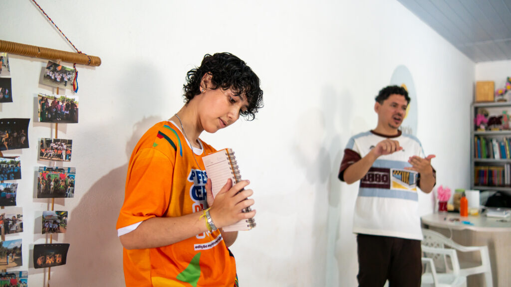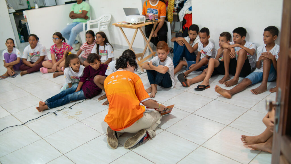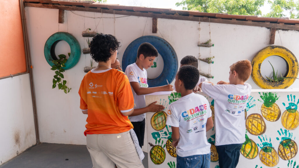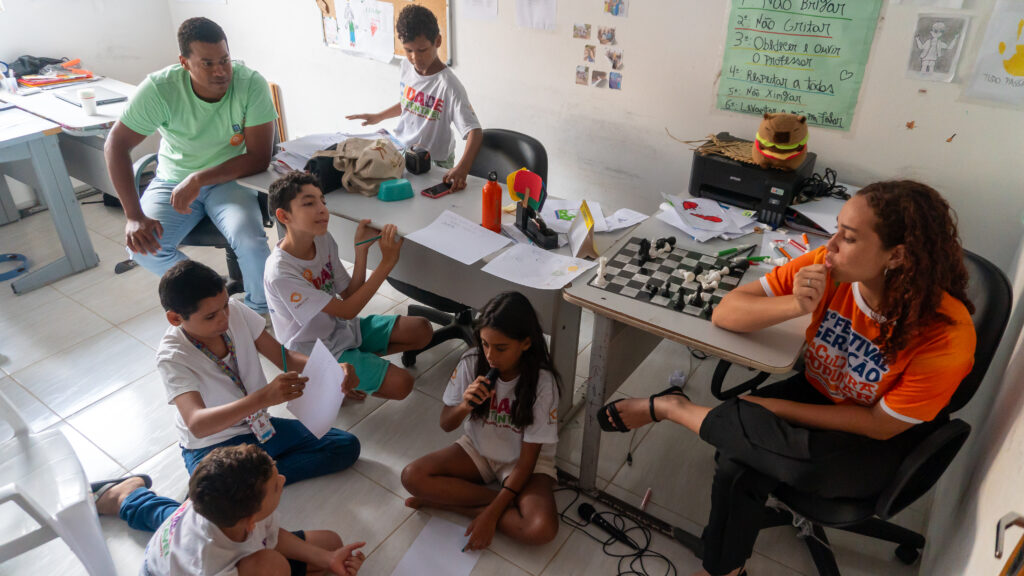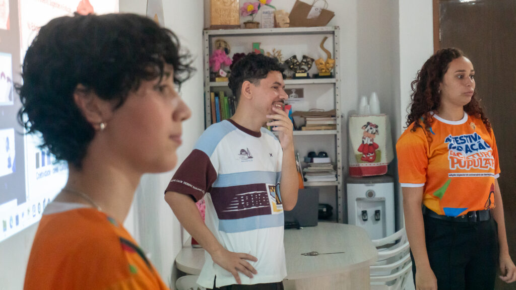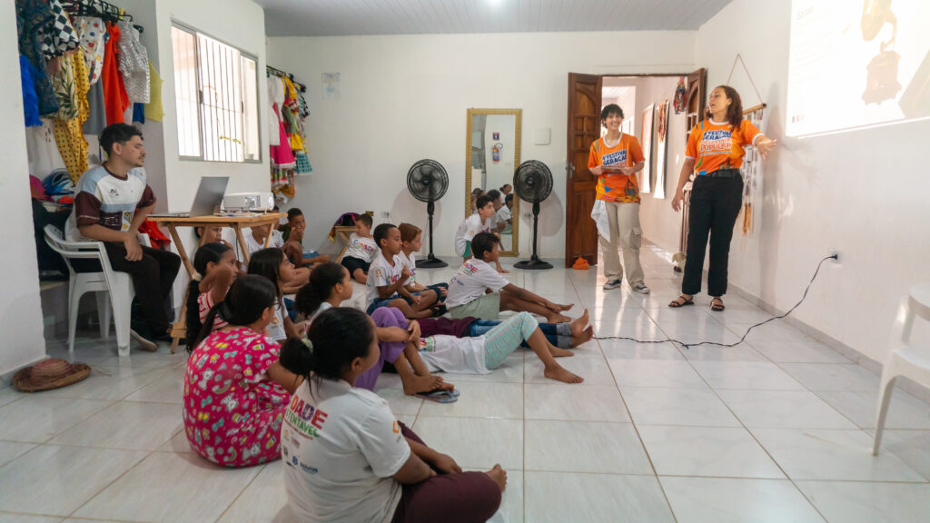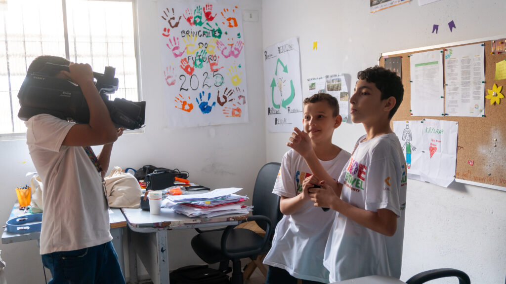 Mais cedo, na sede da Geração Futuro, na Vila São José, em Pombos/PE, crianças e pré-adolescentes da comunidade participaram de uma Oficina de Audiovisual ministrada pelos arte-educadores Kaylane Vitória, Luiz Felipe e Zé Emerson Coelho, que também é coordenador do Projeto Cidade Sustentável.