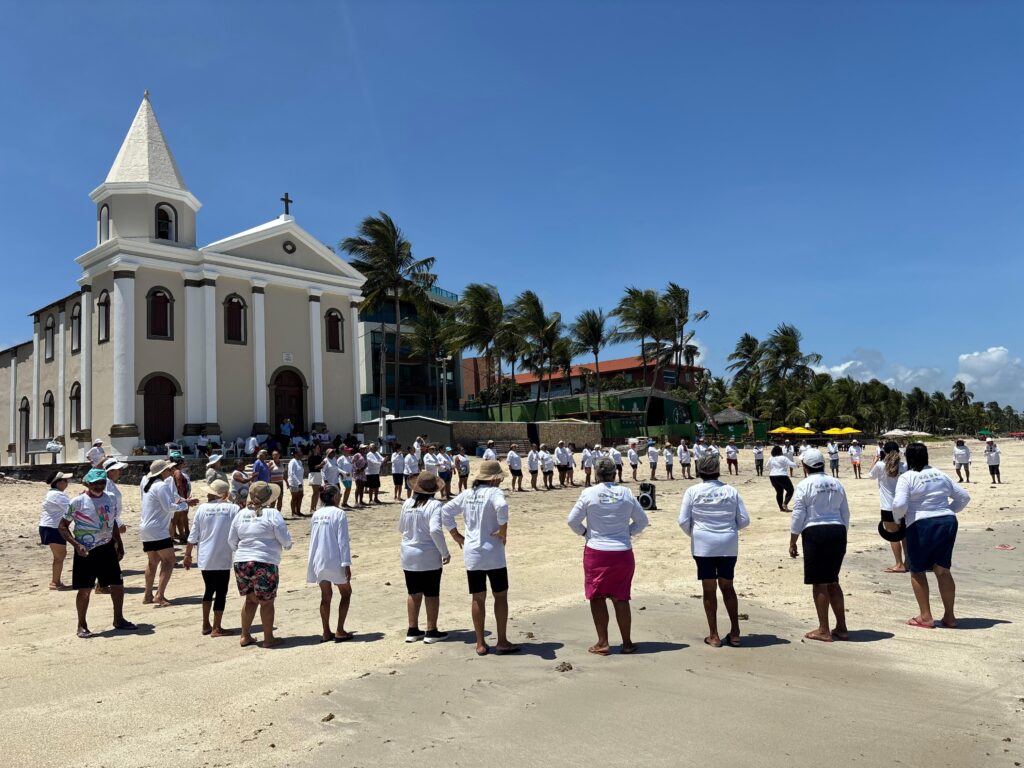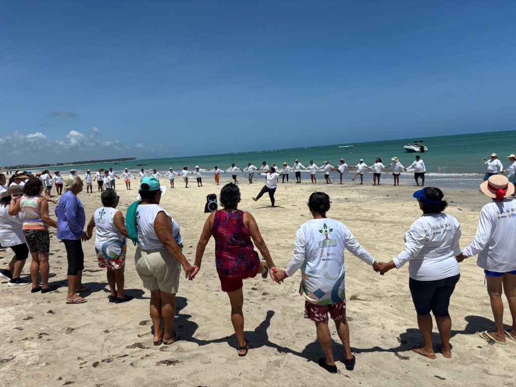 Na sequência, as pessoas idosas do Projeto Verdeporto participaram de uma atividade de lazer na praia de Tamandaré.