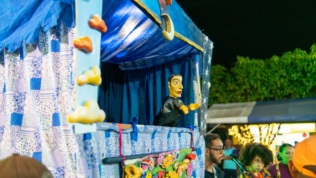 Na sequência, o Festival recebeu a arte do mamulengo. O grupo Mamulengando Alegria fez crianças e adultos rirem e se divertirem juntos. Por trás dos mamulengos, duas mulheres, Cida e Larissa Lopes, filhas do mestre Mestre Zé Lopes, mostrando a força da mulher na cultura da região.
