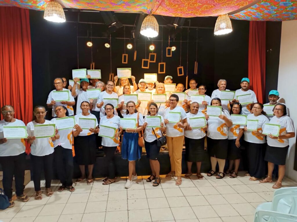 O Projeto Verdeporto: pessoas idosas e meio ambiente, da Geração Futuro, celebrou a formatura da turma IV, de Lagoa de Itaenga-PE, na última terça-feira, 14 de outubro, no Cineteatro Geração Futuro. Ao longo de seis meses, 33 pessoas idosas vivenciaram o processo de formação em Agentes de Desenvolvimento Ambiental, com uma carga horária total de 100 horas.