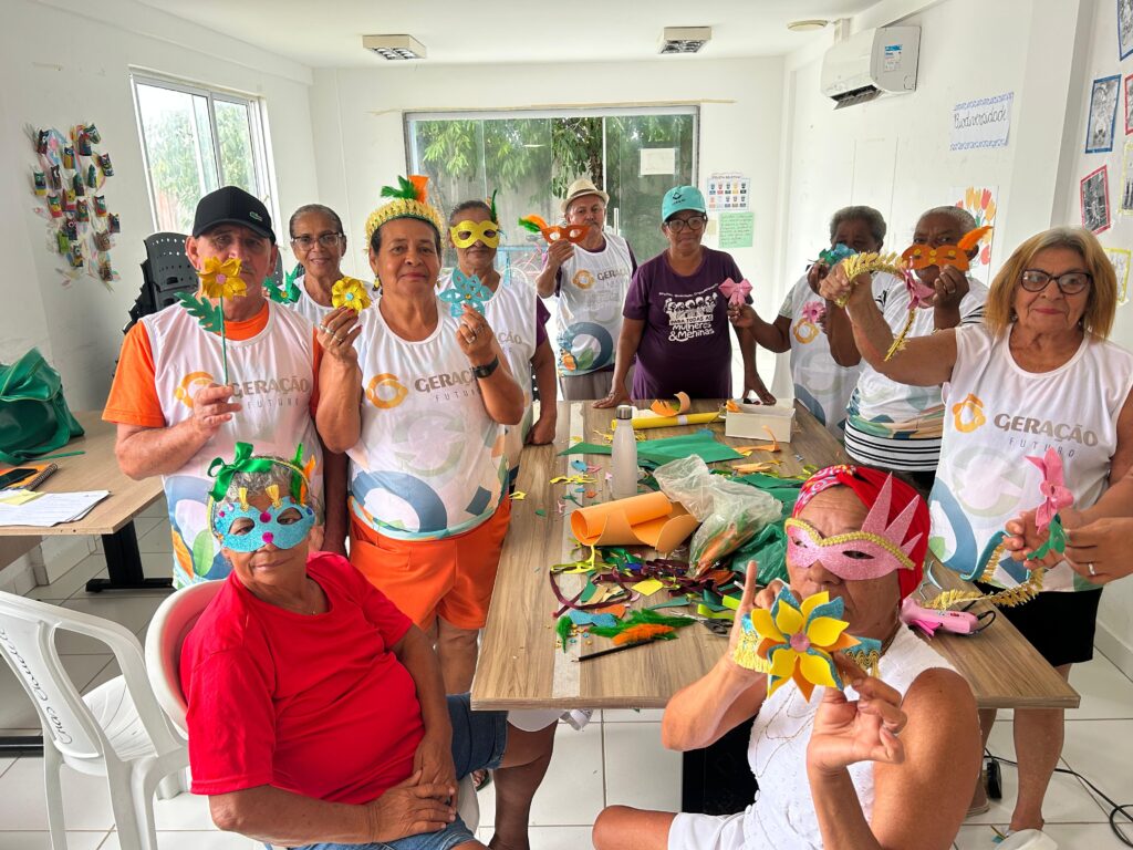 As pessoas idosas do Projeto Verdeporto das turmas de continuidade e das turmas de formação em Agentes de Desenvolvimento Ambiental, nos municípios do Cabo de Santo Agostinho, Jaboatão dos Guararapes e Vitória de Santo Antão, participaram de oficinas de sustentabilidade e reciclagem durante esta semana pré-carnavalesca.