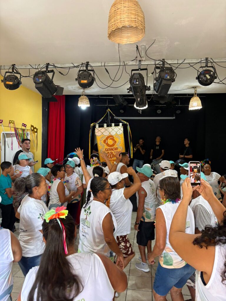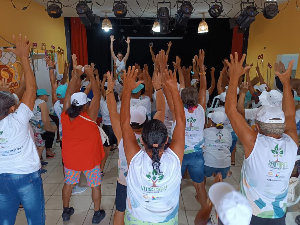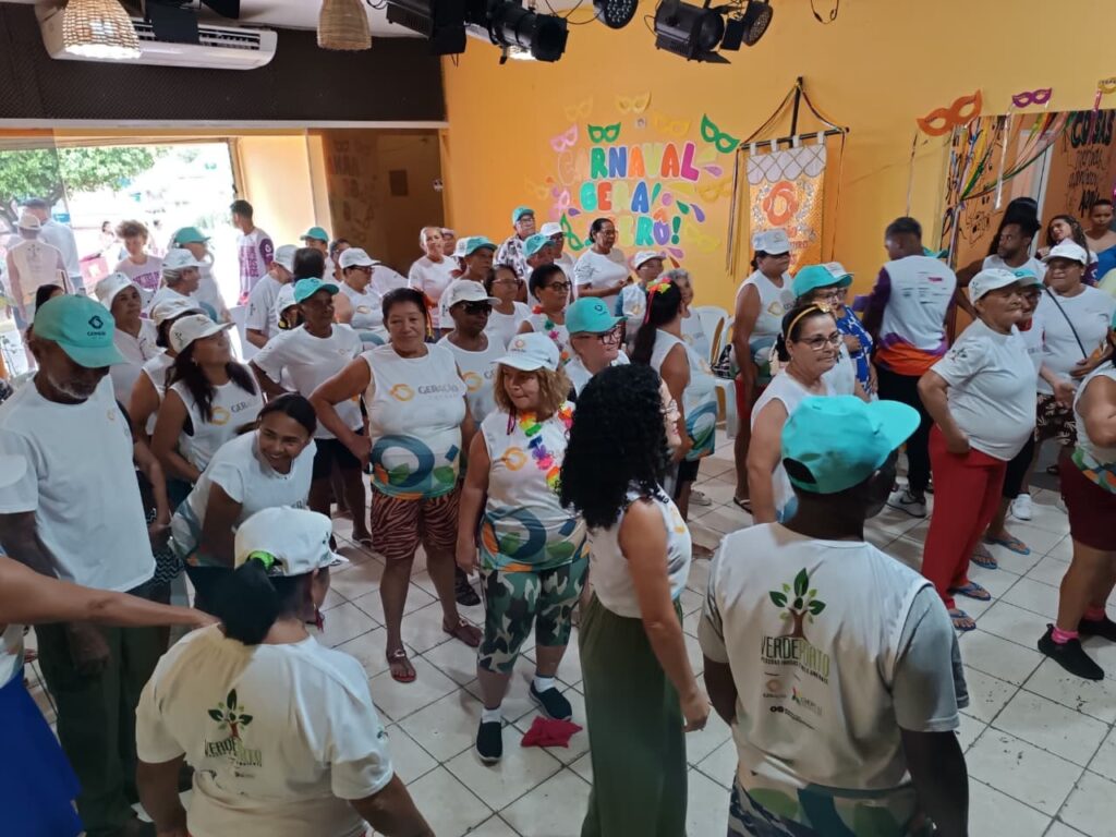Carnaval Intergeracional: promovendo respeito e assegurando direitos foi o tema da roda de diálogo e das atividades de alongamento e recreação realizadas pelo Projeto Verdeporto: pessoas idosas e meio ambiente, na manhã desta sexta-feira, 13 de fevereiro, no Cineteatro Geração Futuro, em Lagoa de Itaenga-PE.
