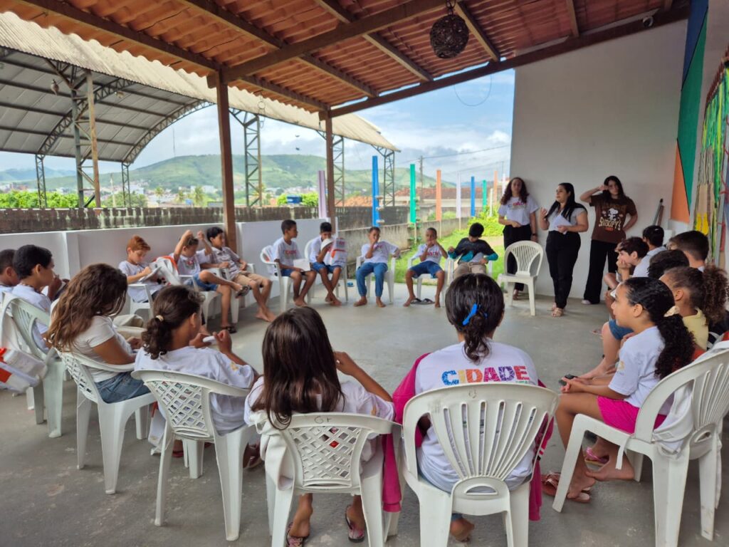 A psicóloga Lisandra Farias conduziu o momento com acolhida, realização de dinâmicas e muita interação com o objetivo de conscientizar as crianças e adolescentes sobre a temática da campanha.
