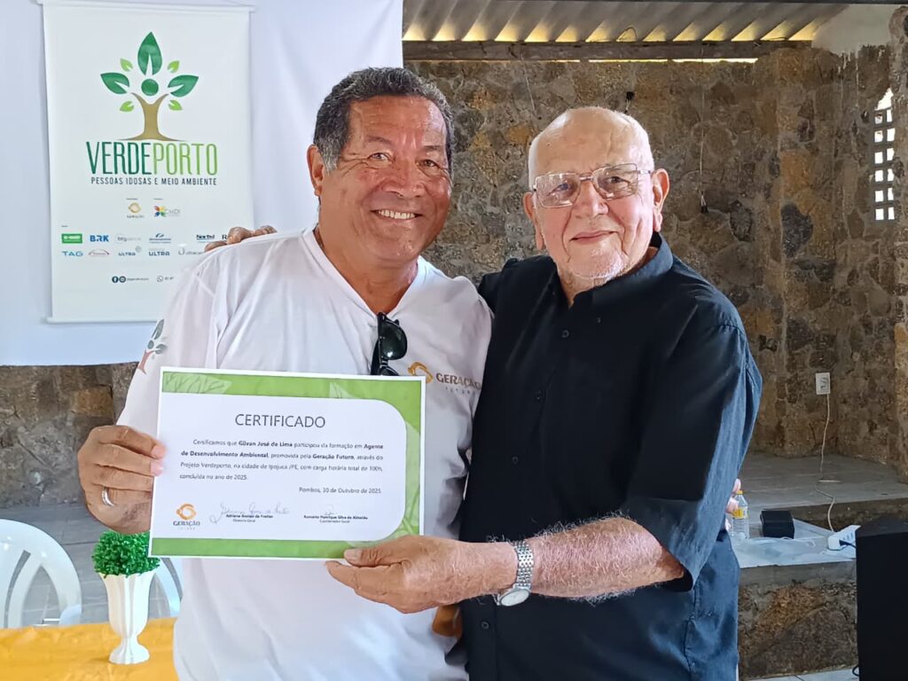 O Projeto Verdeporto: pessoas idosas e meio ambiente, da Geração Futuro, celebrou a formatura das turmas de Agentes de Desenvolvimento Ambiental das comunidades de Juçaral, no Cabo de Santo Agostinho, e de Nossa Senhora do Ó, em Ipojuca, na última quinta-feira, 30 de outubro, no salão paroquial da Igreja de São José, em Juçaral, distrito do Cabo de Santo Agostinho-PE.